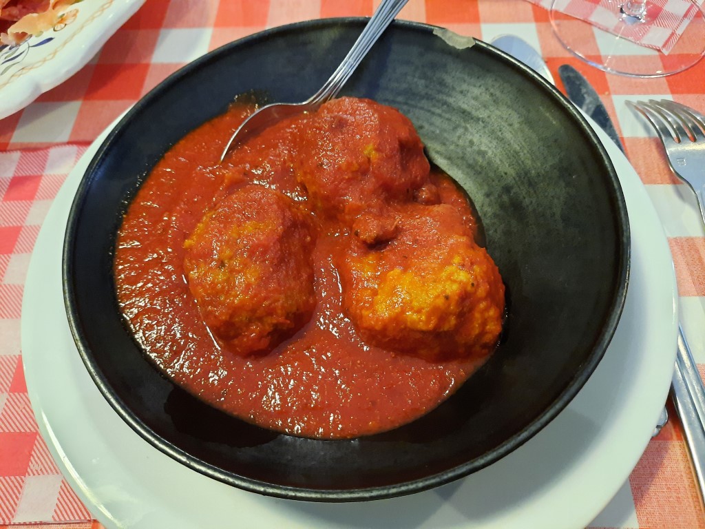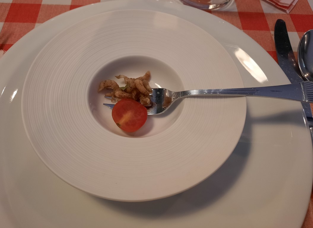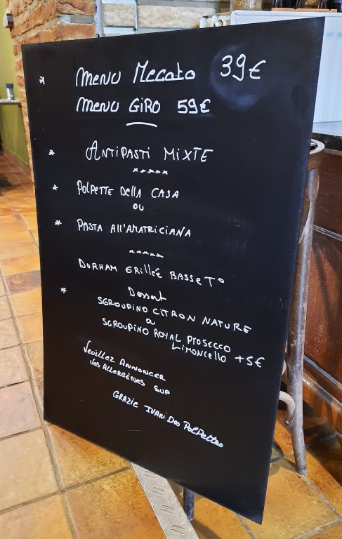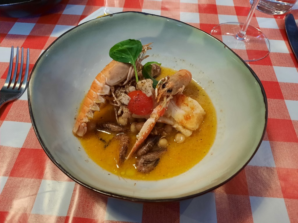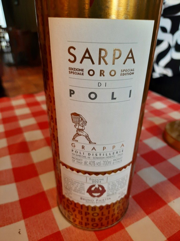 Du côté de la théorie des fluides, pour commencer, un chardonnay blanc ColleCavalieri Terre di Chietti de 2023, et pour suivre un Vivera Terra dei Sogni sicilien rouge de 2020, un très bel assemblage de Cabernet Sauvignon, de Syrah, de Merlot et de Petit Verdot. Sans oublier les traditionnelles « Grappine », une Stravecchia Negroni, 18 mois de barrique, et ensuite une Sarpa Oro « Edizione Speciale » de chez Poli, pour coiffer ce déjeuner authentique. De l’Alpha à l’Oméga, tout fut à la hauteur de nos espérances !