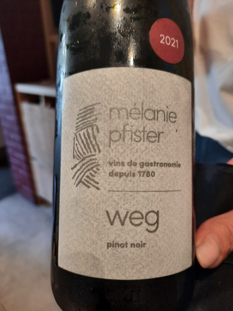 Côté théorie des fluides, on élève le débat avec un Pinot Noir “Weg” 2021 signé Mélanie Pfister, viticultrice alsacienne et sorcière du terroir depuis 1780 (enfin, sa famille, pas elle personnellement, faut voir à ne pas abuser). Après un petit temps de repos, le vin s’ouvre comme un roman de Simenon : fruits rouges, touche de cassis, un poil d’épices et un soupçon de poivre blanc. En bouche, c’est net, franc, vif, profond. Les vieilles vignes parlent, et moi j’écoute, verre en main, l’œil humide. Bref, un accord parfait pour notre repas de princes en bermuda.